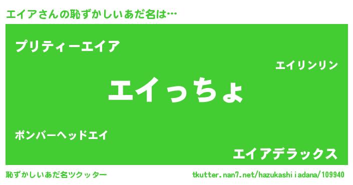 | 意味不明あだ名 | 『住所不定無職エイア(53歳)』『自称エイア』 |