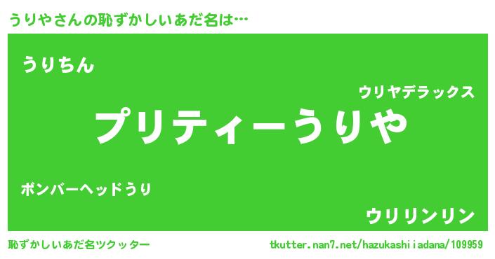 | ヘコむあだ名 | 『うりっふぃ~』『うりや(苦笑)』 |