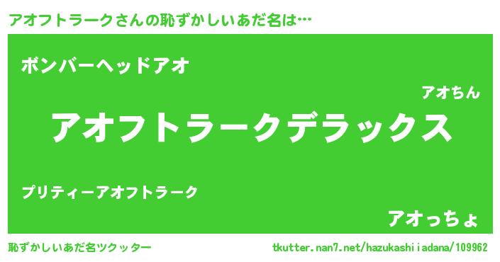 | ヒーロー風カッコイイあだ名 | 『仮面アオダー』『ネオアオフトラーク』 |
