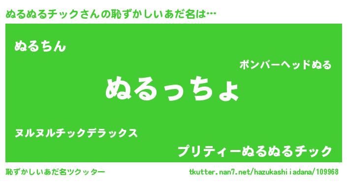 | 意味不明あだ名 | 『ぬるぬるチックフォーエバー』 |