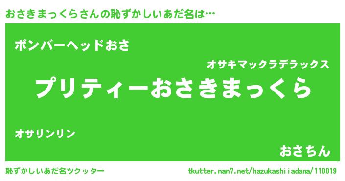 | ヘコむあだ名 | 『おさにー』『おさきまっくら(笑)』 |