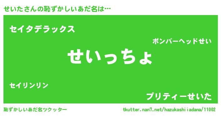 | 意味不明あだ名 | 『せいたフォーエバー』『自称せいた』 |