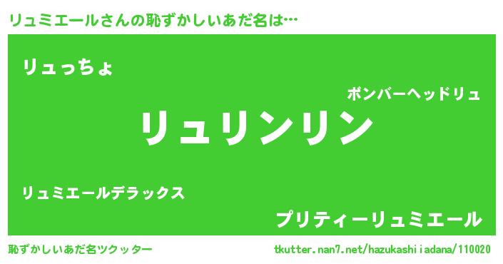 | ヘコむあだ名 | 『リュっ子』『牛乳』『リュにゅー』 |