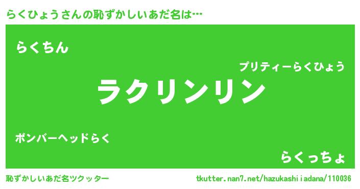 | ヘコむあだ名 | 『らくっぺ』『らくひょう(震え声)』 |