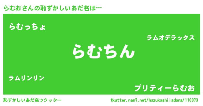 | ヘコむあだ名 | 『らむお(笑)』『牛乳』『らむにー』 |
