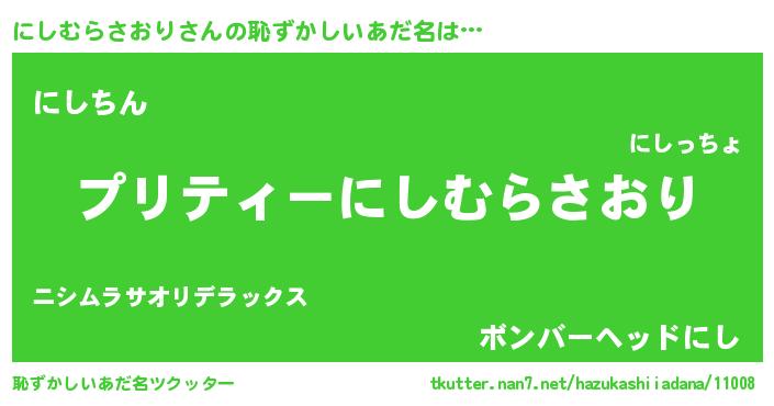 | ヘコむあだ名 | 『にしにー』『にしむらさおり(笑)』 |