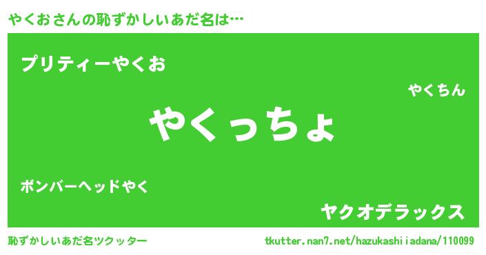 | 女子向けラノベタイトル風あだ名 | 『やくおの雑貨屋さん』『闇のやくお』 |