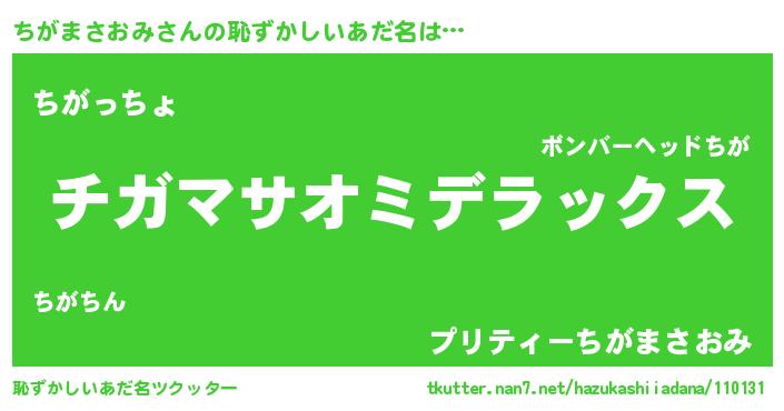 | ヒーロー風カッコイイあだ名 | 『最強戦士チガマサオミ』『仮面チガダー』 |