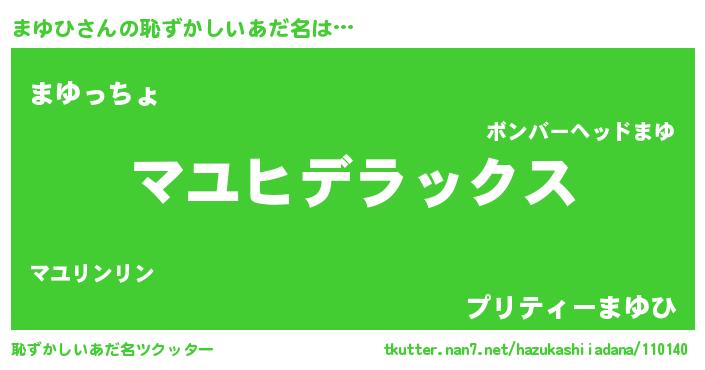 | ヒーロー風カッコイイあだ名 | 『仮面マユダー』『最強戦士マユヒ』 |