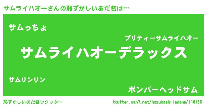 | 男性向けラノベタイトル風あだ名 | 『この素晴らしい世界にサムライハオーを!』 |