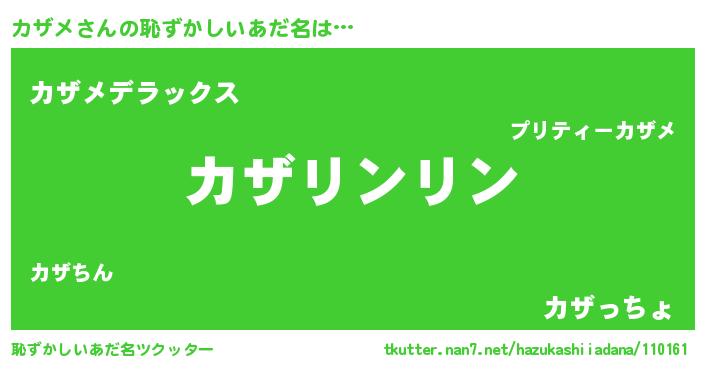 | ヒーロー風カッコイイあだ名 | 『天弓騎士カザ』『ウルトラ戦士カザメ』 |