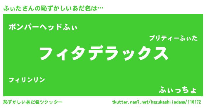 | 意味不明あだ名 | 『住所不定無職ふぃた(86歳)』『自称ふぃた』 |