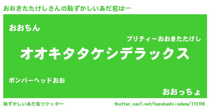 | 意味不明あだ名 | 『自称おおきたたけし』 |