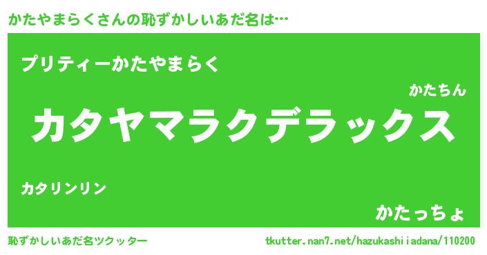 | 意味不明あだ名 | 『自称かたやまらく』 |
