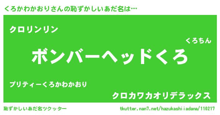 | ヘコむあだ名 | 『くろっ子』『くろかわかおり(震え声)』 |
