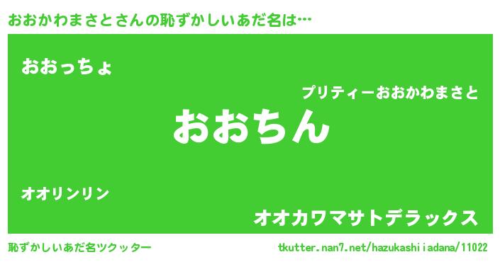 | 可愛いあだ名 | 『おおかわまさとママ』『おおちー』 |
