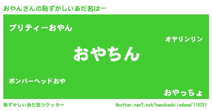 | ヘコむあだ名 | 『おやん(苦笑)』『おやふぇ~』 |