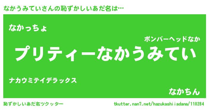 | 意味不明あだ名 | 『住所不定無職なかうみてい(5歳)』 |