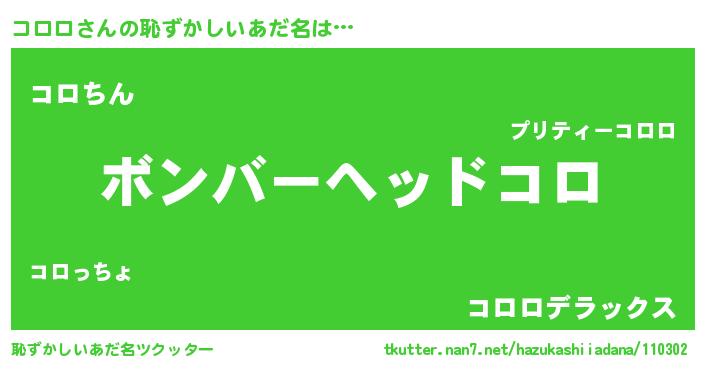 | ヒーロー風カッコイイあだ名 | 『天空の使者コロロ』『ネオコロロ』 |