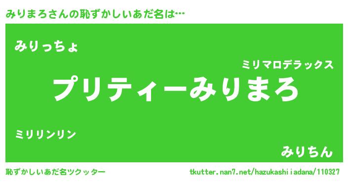 | ファンタジー風あだ名 | 『ミリフェル』『エターナルミリマロー』 |