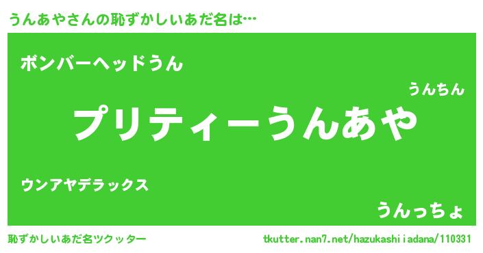 | 意味不明あだ名 | 『住所不定無職うんあや(2歳)』 |