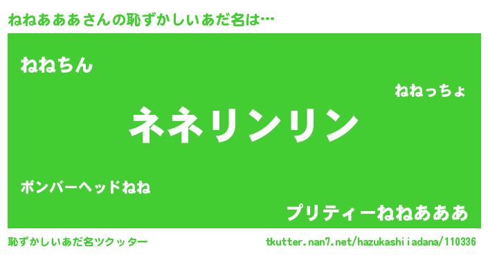 | ヘコむあだ名 | 『ねねっぺ』『ねねあああ(小並感)』 |