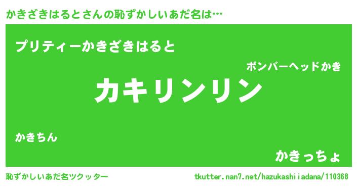| 意味不明あだ名 | 『とにかく怪しいかきざきはると』 |
