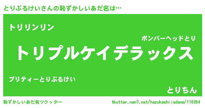| ヘコむあだ名 | 『とりっ子』『とりぷるけい(小並感)』 |