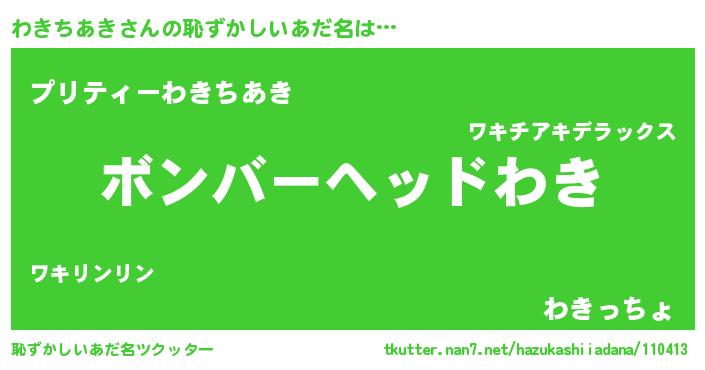 | 欧米人風あだ名 | 『アンジェラ・わきちあき』 |