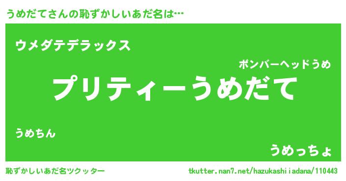 | 意味不明あだ名 | 『ペロリンうめだて』『自称うめだて』 |