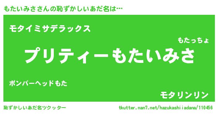 | 意味不明あだ名 | 『住所不定無職もたいみさ(71歳)』 |