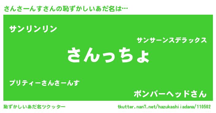 | ヘコむあだ名 | 『つくし』『さんぷりん』 |