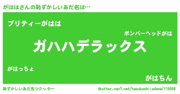 | ヘコむあだ名 | 『がはもー』『がはは(苦笑)』『豆乳』 |