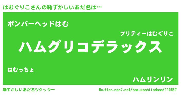 | ヒーロー風カッコイイあだ名 | 『サイバー戦士ハムグリコ』 |