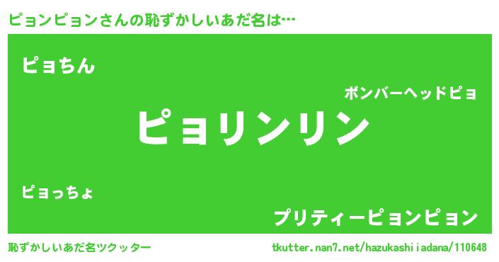 | ヘコむあだ名 | 『ピョぷりん』『ピョンピョン(苦笑)』 |