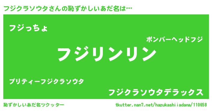 | 意味不明あだ名 | 『とにかく怪しいフジクラソウタ』 |
