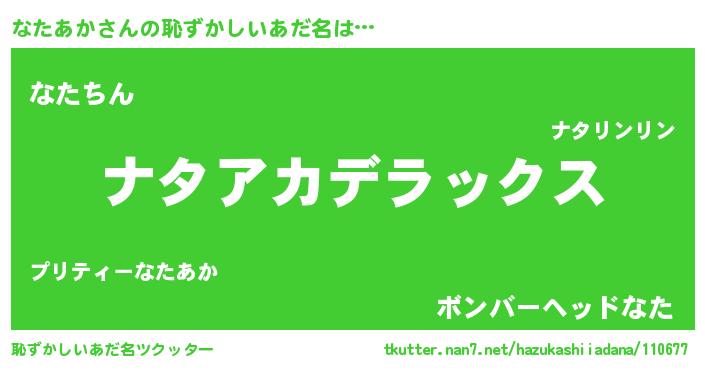 | ヒーロー風カッコイイあだ名 | 『究極戦士ナタアカ』『ネオナタアカ』 |