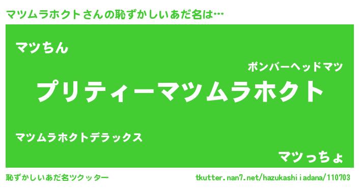 | 意味不明あだ名 | 『住所不定無職マツムラホクト(8歳)』 |