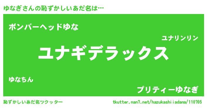| ヒーロー風カッコイイあだ名 | 『究極戦士ユナギ』『正義の使者ゆなぎ』 |
