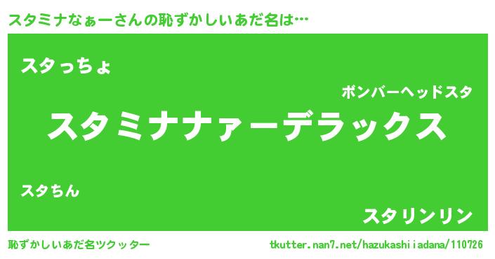 | 意味不明あだ名 | 『自称スタミナなぁー』 |