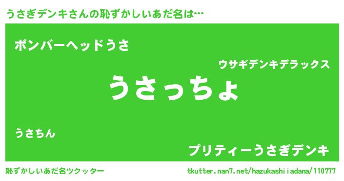 | 意味不明あだ名 | 『うさぎデンキフォーエバー』 |