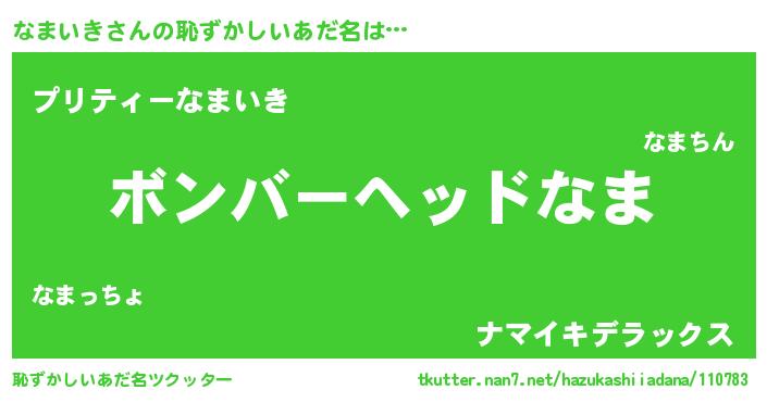 | ヘコむあだ名 | 『なまふぇ~』『なまいき(小並感)』 |