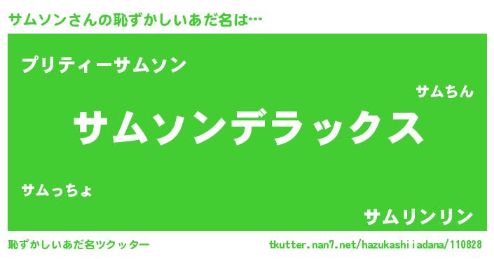 | 男性向けラノベタイトル風あだ名 | 『はたらくサムソンさま!』 |