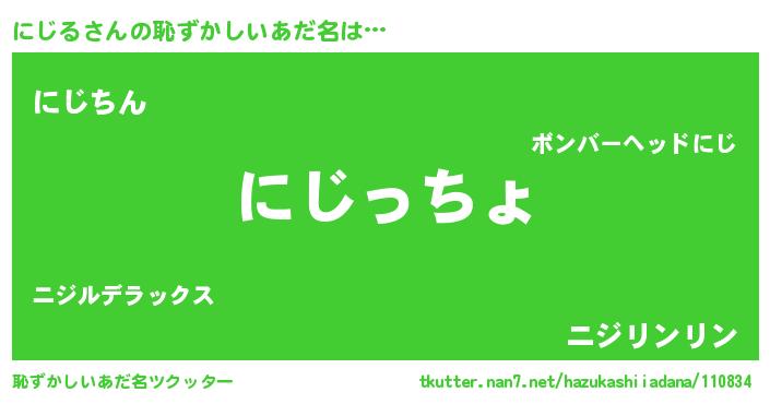 | 男性向けラノベタイトル風あだ名 | 『魔弾の王とにじる』『ニジルスレイヤー』 |
