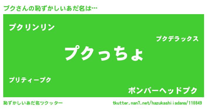 | ヘコむあだ名 | 『なまこ酢』『プクを』『プクにゅー』 |