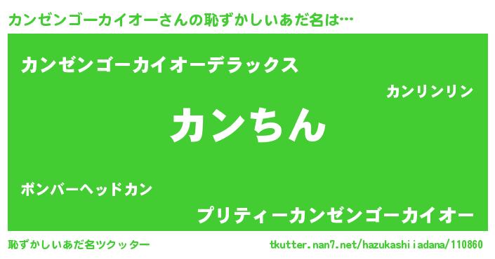 | 意味不明あだ名 | 『永久保存カンゼンゴーカイオー』 |