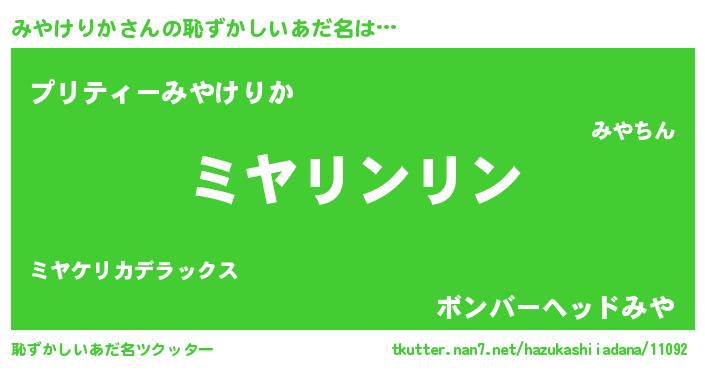 | 男性向けラノベタイトル風あだ名 | 『転生したらみやけりかだった件』 |