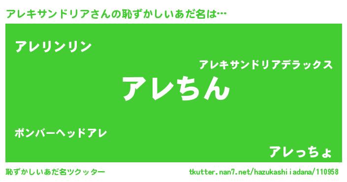 | ヘコむあだ名 | 『アレキサンドリア(爆)』『アレっちょ』 |