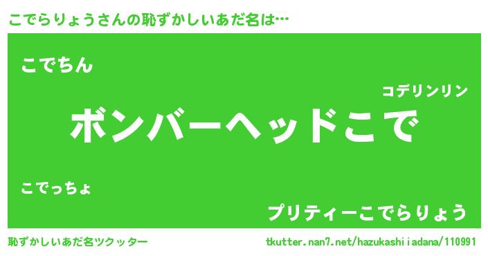 | ヘコむあだ名 | 『こでらりょう(苦笑)』『こでにゅー』 |