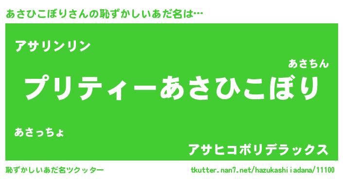 | 胡散臭い通販商品みたいなあだ名 | 『モテモテ間違いなしブレスレット…その名も「あさひこぼり」』 |